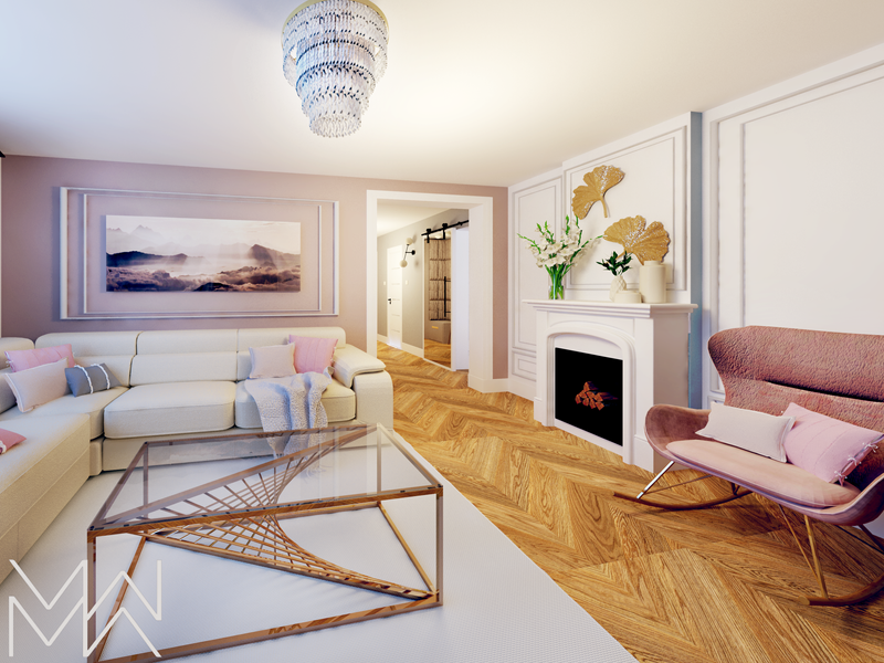 Projekt i aranżacja wnętrz parteru domu jednorodzinnego - 70m2